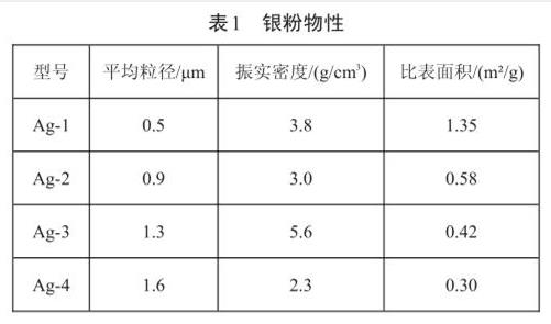 本試驗選用了4種不同形貌和物理特性的銀粉進行研究。表1列出了銀粉的物理特性。