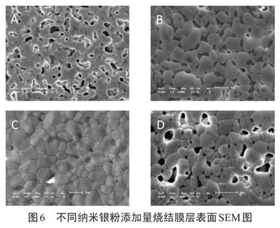 (3)球形銀粉中加入6%的納米銀粉時,燒結膜方阻最小,達到2.1 mΩ/□,膜層結構最緻密。