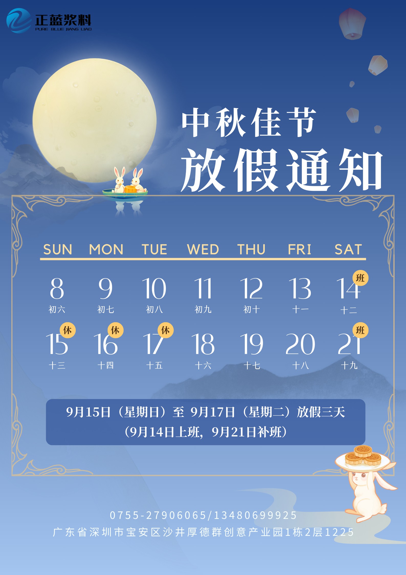 現根據國務院辦公廳通知並結合公司實際情況,中秋節放假安排及工作安排如下: