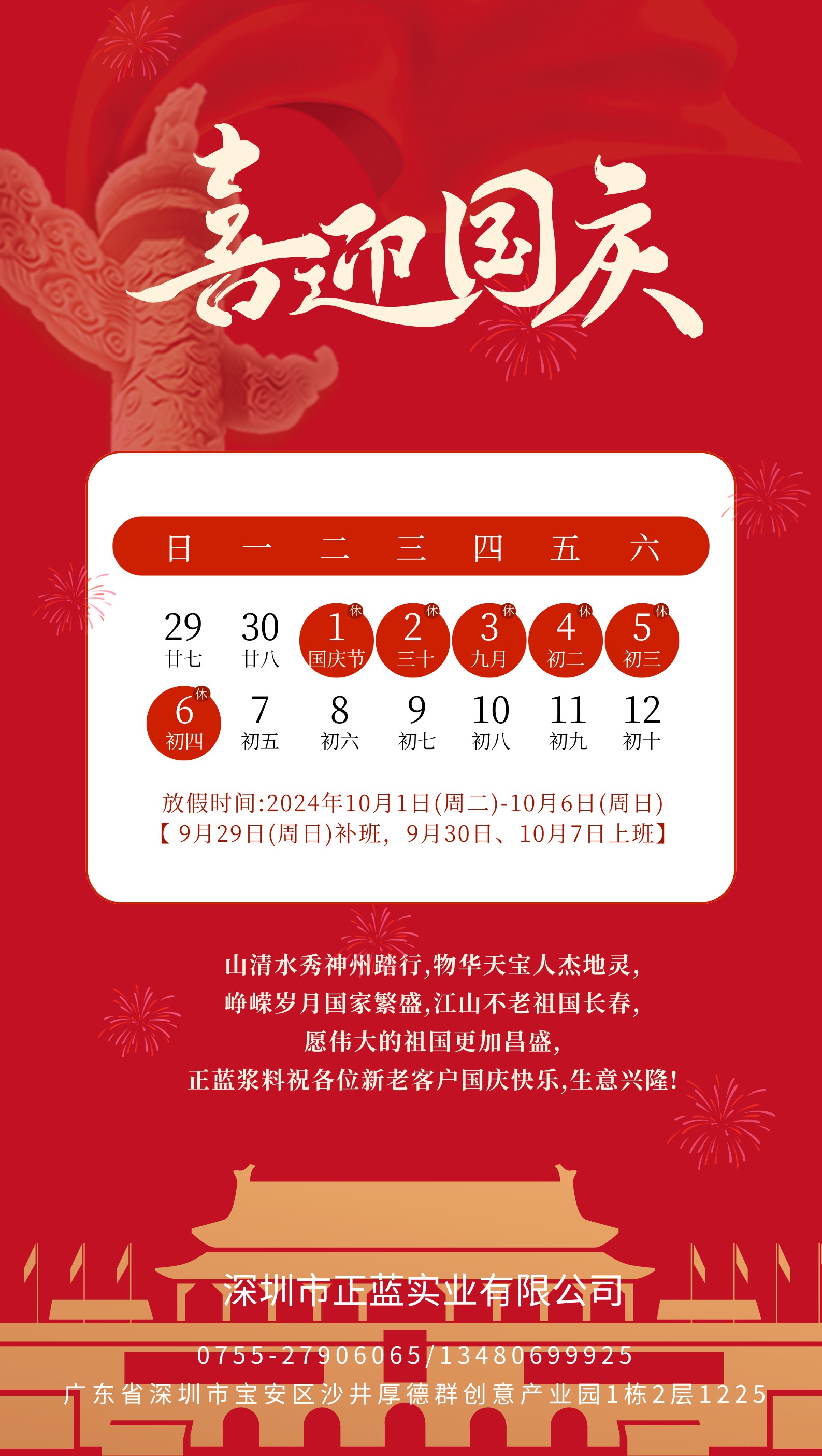 2024年國慶節放假通知